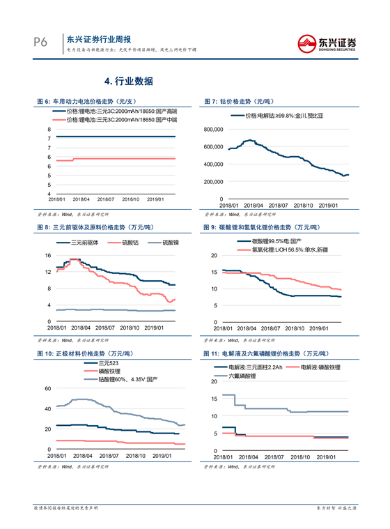 新能源车:补贴政策缘故,原先预计2019年第二季度将出现抢装高峰的观点不变。一季度动力电池装机量12.32GWh,同比增长179%。预计二季度电池装机将维持高增速。结构方面,高端化方向不变,继续看好优质电池厂商和材料厂商。除钴酸锂和硫酸钴价格小幅上涨外,其他各环节价格维持稳定。整体而言,新能源车在汽车销售总量渗透率只有5.5%,2020年新能源车销量有望突破200万台。2019年补贴退坡并向高能量密度集中,看好高能量密度、三元高镍化及充电设备运营,推荐当升科技、国轩高科、特锐德。